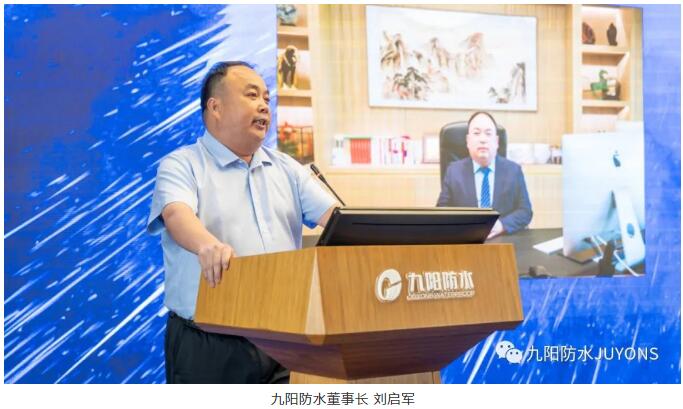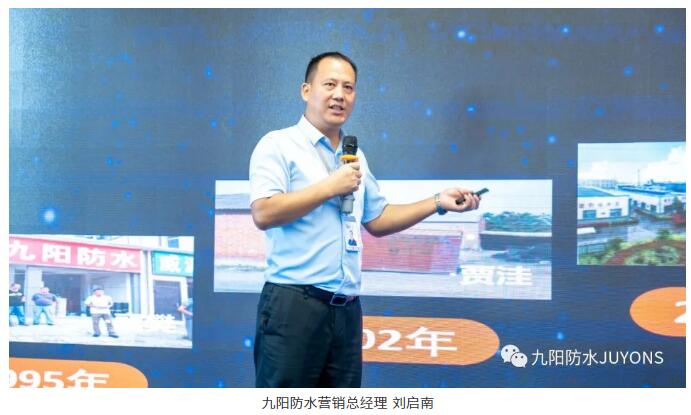 吴总围绕“臻橙堡”全筑高分子系列4款产品(NSPSA高分子胶粒粘预铺防水卷材、NSTPA高分子多层叠压粘防水卷材、NSPCX高分子橡胶密封防水涂料及NSPRF高分子(压敏粘)耐根穿刺防水卷材),从产品的优异性能、耐用耐候的施工应用优势、绿色环保的经济效益等方面展示九阳防水将以绿色环保、高品质产品与高质量服务,为广大客户创造价值,实现与长期同行者共创共享。