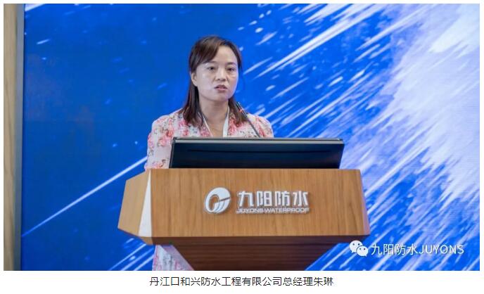 随后,丹江口和兴防水工程有限公司总经理朱琳作为客户代表发言。她表示九阳防水获得今天的成绩是有目共睹的,在与九阳合作的二十年里见证了九阳的快速发展,同时也感受到九阳的优质产品和服务,为客户全面赋能且始终如一,未来将继续与九阳防水深化合作,一起携手共谋发展。