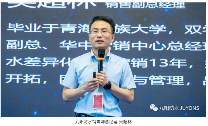 随后,九阳防水销售副总经理吴超林作“臻橙堡”全筑高分子产品演讲,针对当前国家提出的“双碳”目标和国家大力推行新材料的行业背景下,大力推广绿色低碳防水材料已是未来的发展趋势。