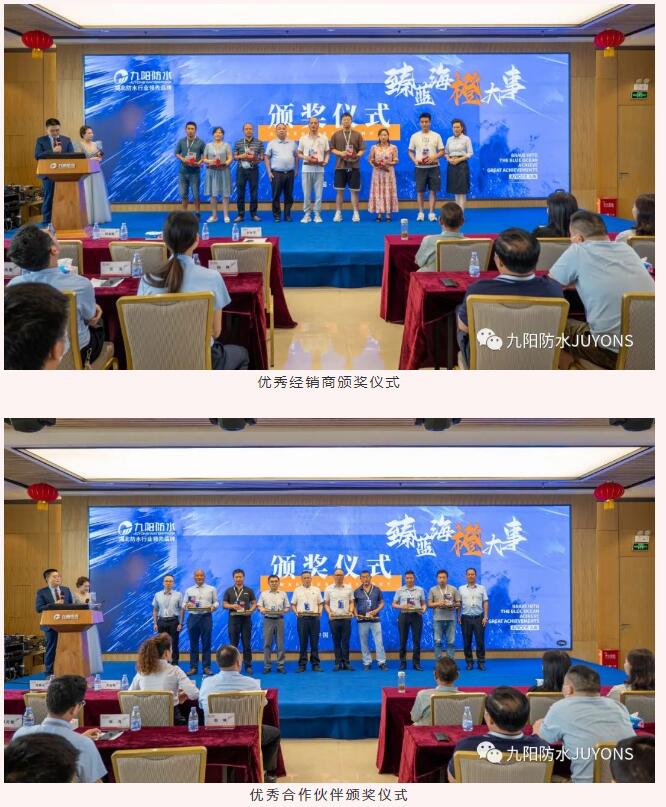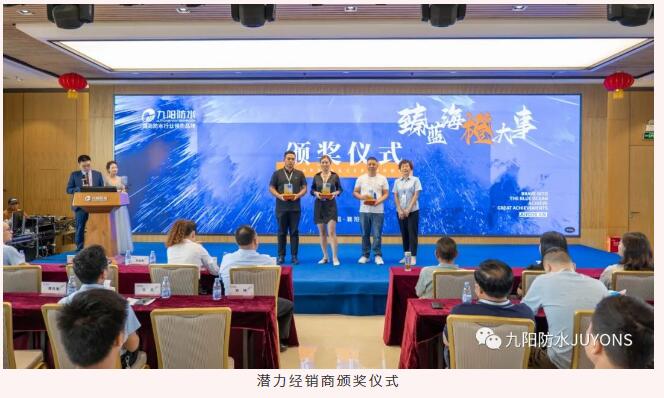 多年来,九阳防水坚持“共享、共生、共赢”的发展理念,构建了良好的合作关系,合作伙伴们在公司品牌的推广、发展等方面做出了很大贡献。会上,九阳防水对表现突出的经销商、合作伙伴进行了表彰,并表示未来希望彼此能够加强合作,快速发展,实现共同的目标。