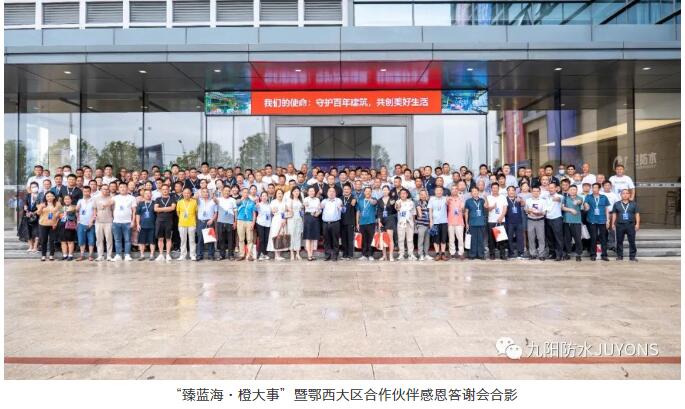 臻蓝海,橙大事。九阳防水所取得的每一点进步和成功,都离不开各位客户伙伴的鼎力支持。在当前国家政策与行业标准的高要求下,面对当前机遇与挑战并存的防水市场,九阳防水将进一步提升品牌实力、产品、服务等优势,紧跟时代脚步与客户需求,怀揣一颗感恩的心,坚持“客户为先,奋斗为荣,协作创新”的核心价值观,携手合作伙伴们走进绿色低碳防水材料的蓝海市场,成就一番大业!