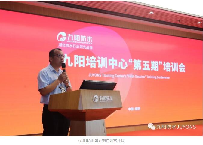 9月29日上午8:00,特训营第五期培训会的开课典礼拉开帷幕,常务副总兼培训中心主任马辉义宣导了九阳防水培训体系建设,阐明了培训纪律和管理细则,最后带领学员们一起学习本次培训考评奖励细则。