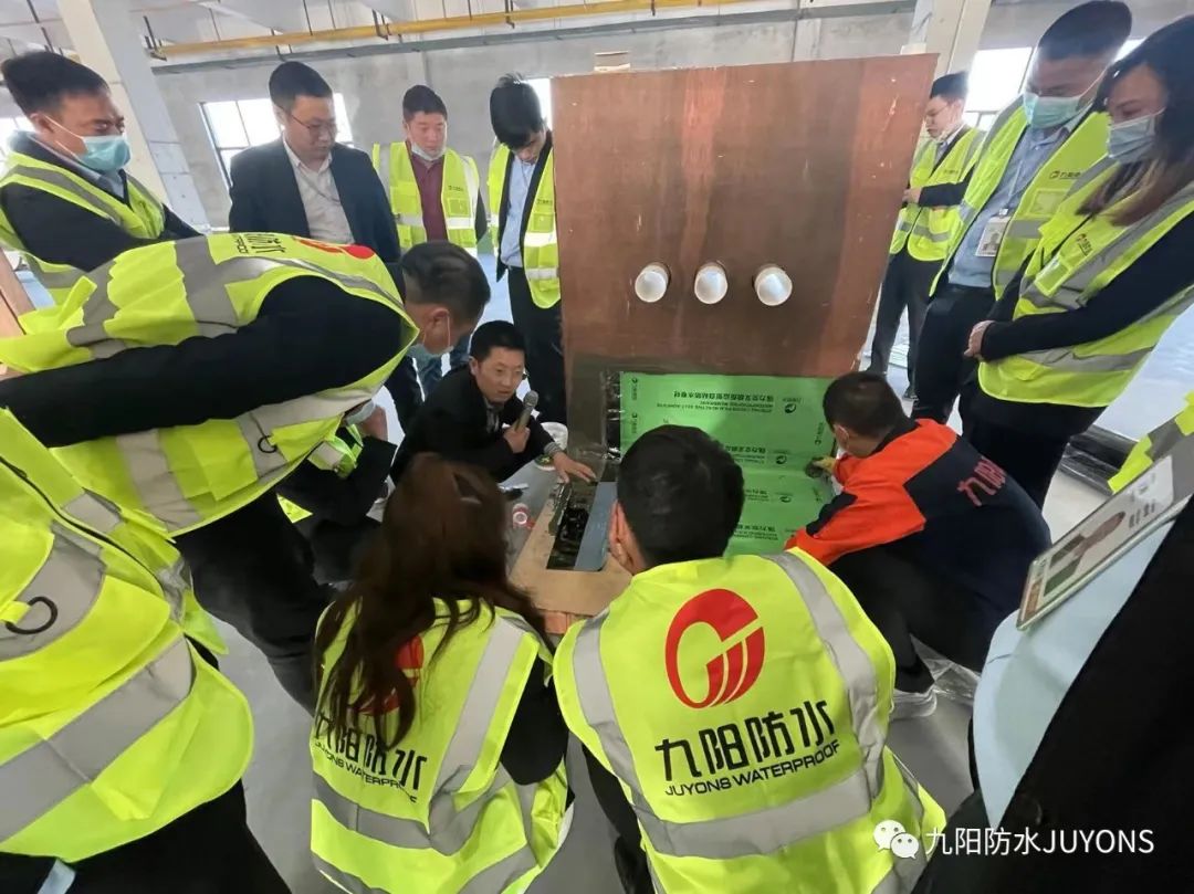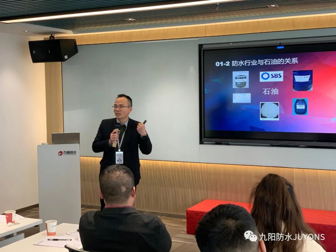 研发中心总监张涛从产品用材角度围绕公司产品体系(产品分类、沥青基防水卷材、高分子防水卷材、防水涂料)课题进行讲解,细致阐述了各类产品的构造、特性及施工应用,由点及面,帮助学员建立系统的产品知识架构,加深理解。应用技术顾问邓小磊则从产品施工应用角度出发,对九阳产品体系里各类产品(重点第二代预铺高分子自粘胶膜防水卷材)的施工工艺、应用场景及施工注意事项进行了讲解.