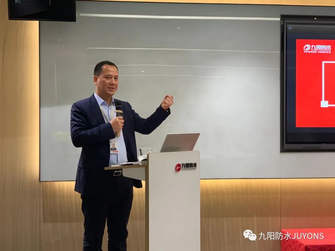 运营副总占波则从对整个防水行业的发展思考视角,拔高学习维度,带来了《建筑防水行业市场分析及未来发展趋势》课题分享,帮助学员逐步认识了解防水产品、防水企业的上下游产业组成、防水行业的发展周期及目前行业企业发展梯队,从商战理论解剖行业内企业间竞争态势,重新认识赛道及营销选择的重要性,最后展望防水行业未来发展趋势,给出中小企业发展之路的思考,聚焦优势资源,选准赛道,深耕细作,穿越周期,方见彩虹。