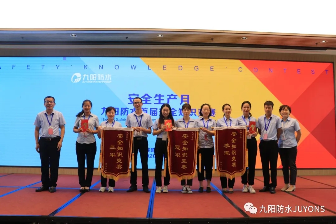 2020年7月24日下午,在九阳峪山生产基地,由党支部与工会共同举办的“安全生产月·九阳防水首届安全知识竞赛”活动落下帷幕。